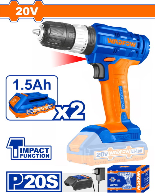 شنيور بطارية 20 فولت من وادفو، مزود ببطاريتين 1.5Ah وشاحن، بسرعتين ميكانيكيتين ونظام دقاق حتى 22500 نبضة/دقيقة. مثالي للأعمال المنزلية والمهنية، ويُصنف ضمن معدات كهربائية ببطارية عملية وقوية.
