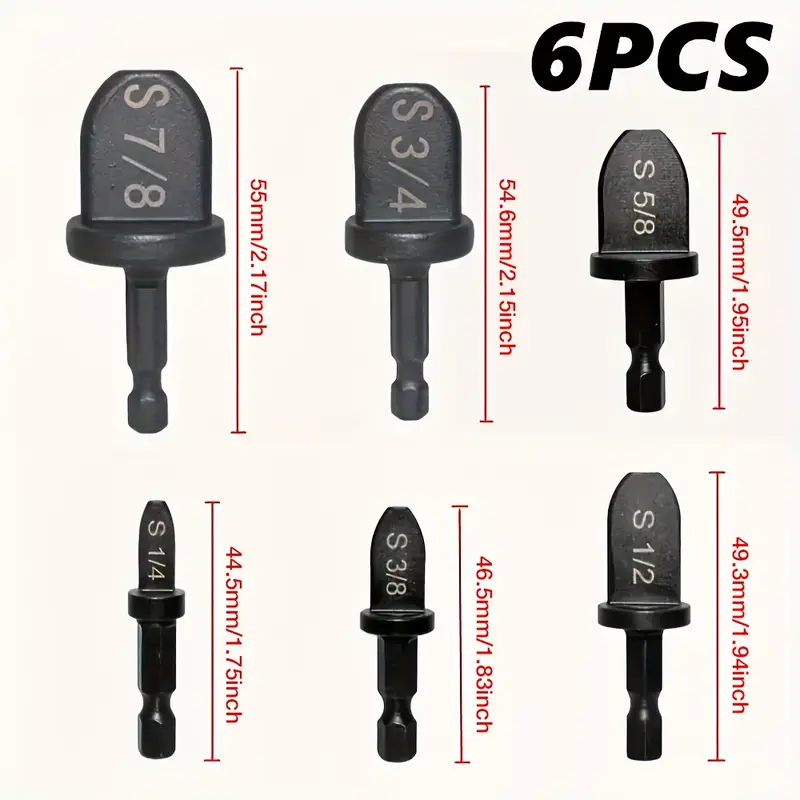 المقاسات : 1/4 , 3/8 ,1/2 , 5/8 , 3/4, 7/8