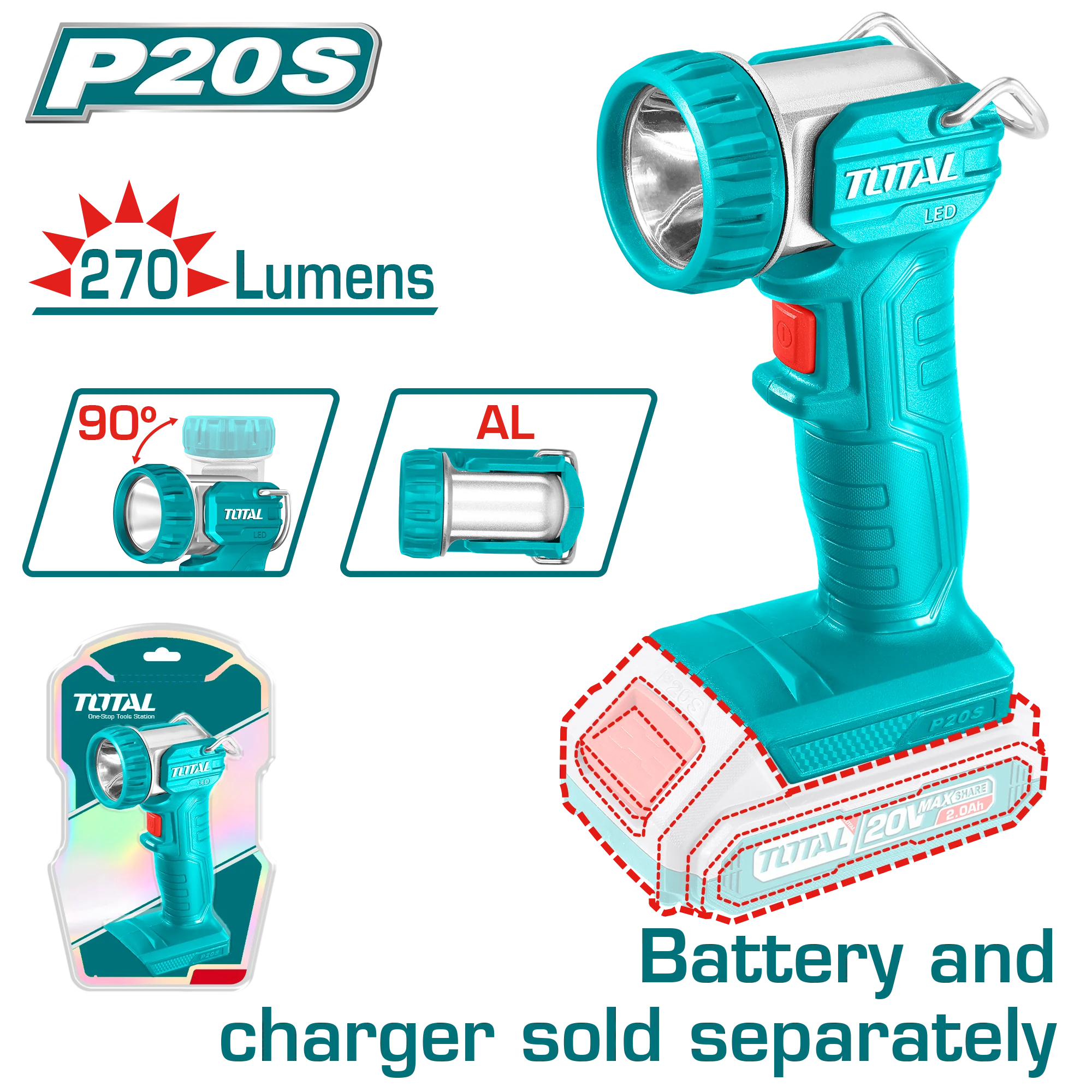 الكشاف يعمل بتقنية الشحن اللاسلكي ببطارية 20 فولت (غير مرفقة)، مما يمنحك سهولة في التنقل أثناء العمل دون إعاقة من الأسلاك.