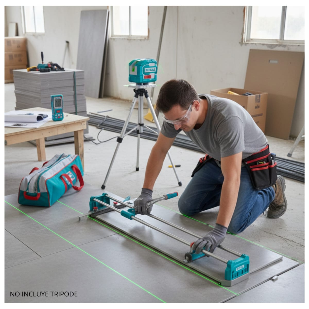 قاطع البلاط (THT571201) أقصى طول للقطع 1200 مم أقصى سُمك للقطع 16 مم مادة المقبض ألومنيوم مصبوب مقاس الشفرة 22 × 6 × 2 مم مادة الشفرة كربيد التنجستن محمل كروي في الشفرة نعم نوع القضيب قضبان فولاذية صلبة الوزن الصافي 15 كجم سُمك القاعدة 2 مم مقاس القاعدة الفولاذية 1420 × 200 مم ليزر خطي ذاتي التسوية (TLL306502) نطاق العمل 0-35 م خط أفقي 360 درجة (قطعة واحدة) خط رأسي قطعة واحدة دقة التسوية ±1.5 مم عند 7 م دقة الخط ±1.5 مم عند 7 م زمن التسوية ≤ 3 ثوانٍ مناسب لـ للتبليط نعم مستشعر مسافة ليزري (TMT51036) نطاق القياس 0.05-100 متر دقة القياس ±2.0 مم طول موجة الليزر 635 نانومتر قدرة الليزر <1 ميلي واط فئة الليزر الفئة 2 قياس مستمر نعم قياس غير مباشر نعم قياس المساحة نعم قياس الحجم نعم قياس فيثاغورس أحادي/مزدوج (موجب وسالب) نعم الملحقات جهاز تحكم عن بعد واحد – حامل مغناطيسي واحد – حقيبة حمل واحدة – بطاريتان AA الأبعاد: 14.4 × 27.8 × 22.5 سم الوزن: 18.7 كجم التغليف: علبة ملونة الاستخدام: طقم تركيب بلاط السيراميك والبورسلين: قاطع بلاط، قطع مستقيمة وتعديلات، بالإضافة إلى ميزان ومقياس مسافة ليزري للتحقق من التخطيط والمحاذاة. مثالية لتركيب الأرضيات والبلاط حيث تتطلب دقة عالية في القطع والتخطيط. تتيح هذه الأداة قياسات أسرع، وتحكمًا دقيقًا في استقامة القطع، وتشطيبات محسّنة، مما يقلل من الحاجة إلى إعادة العمل في المشاريع السكنية والتجارية. تأكد من اختيار المواد والملحقات المناسبة قبل البدء. التوصيات: عاير دليل قاطع البلاط واختبره على قطع تجريبية لضبط الضغط. حافظ على نظافة قرص القطع وسلامته. عند استخدام أجهزة الليزر، تجنب النظر مباشرةً إلى شعاع الليزر، واعمل على أسطح ثابتة للحصول على قراءات دقيقة. ارتدِ نظارات وقفازات واقية، وحافظ على المنطقة خالية من العوائق. خزّن الملحقات والبطاريات بشكل منفصل لمنع فقدانها أو تلفها أثناء النقل. قم بإجراء اختبار قصير قبل الاستخدام المتواصل.